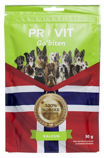 Beskrivelse Provit Go’biten er rene, norske naturprodukter uten noen form for tilsetninger. Dette gir trygge og naturlige godbiter til kos, trening og belønning av hunden. Go’biten Kalkun er produsert av norsk kalkun og frysetørket. Frysetørking bevarer råvarens kvalitet, smak, næringsinnhold, mineraler og vitaminer. Høy smakelighet og lukt av kalkun gir motiverte hunder. Dette er en godbit hunden virkelig vil jobbe for. Go’biten passer derfor ypperlig i innlæring og trening av hund på alle nivåer. Egnet for alle hunder, uansett størrelse og alder. Singelprotein kalkun gjør at du har kontroll i forhold til sensitivitet eller allergi. SAMMENSETNING: Kalkun NÆRINGSINNHOLD: Protein 62,2%, fett 27,3%, fukt 0,9% HOLDBARHET: Se datostempling på posen. Når posen er åpnet bør innholdet brukes innen 14 dager. Lagres tørt og kjølig. Om Provit: Provit er et kvalitetsfôr som kan bidra til bedre helse for hunden din. Fôret er produsert av overskuddet fra norske kjøttråvarer, ved å velge Provit bidrar du dermed også i kampen mot matsvinn. Du kan med trygghet og god samvittighet gi hunden din Provit. |