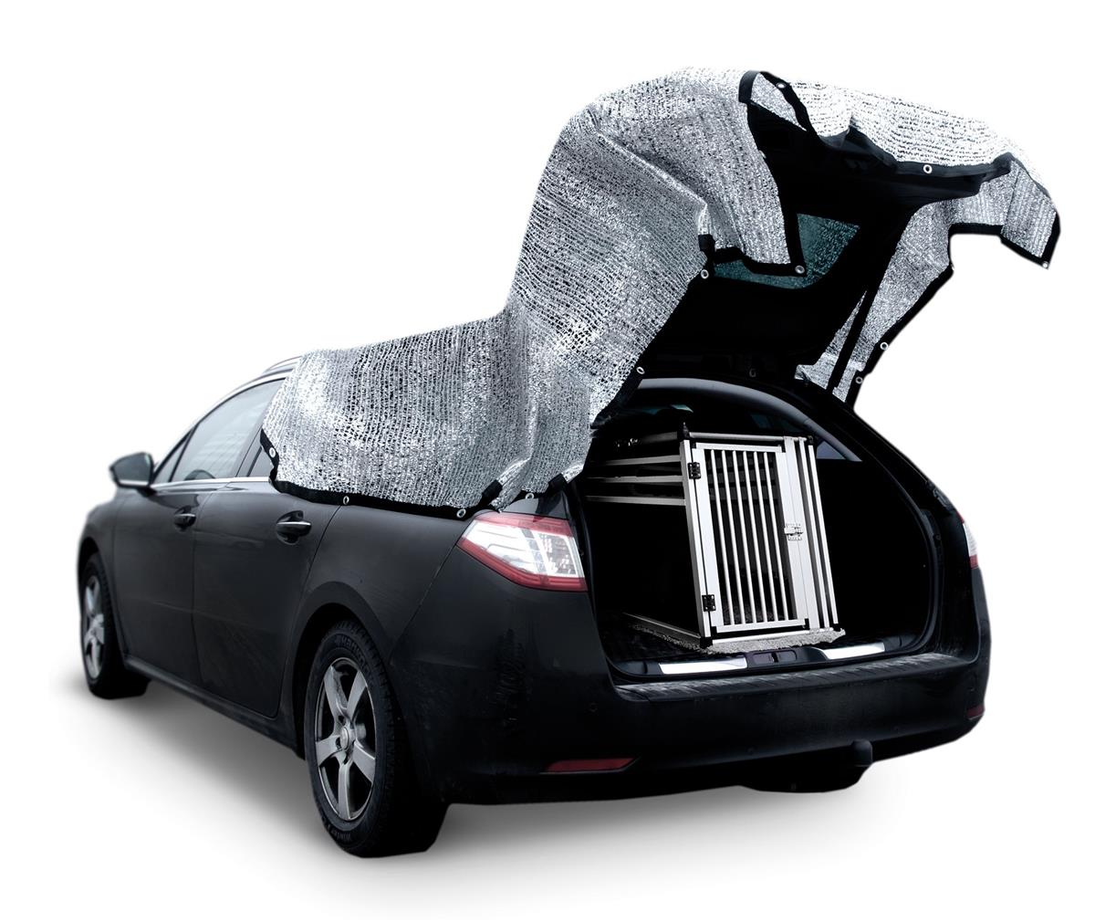 Beskrivelse Sølvduk reflekterer opptil 80% av solstrålene. Luften blåser gjennom duken og gir ventilasjon til kjæledyret ditt. Bruk den på buret, bilen, terrassen eller der du vil ha skygge. Den har maljer langs kanten slik at det er enkelt å feste den. |
